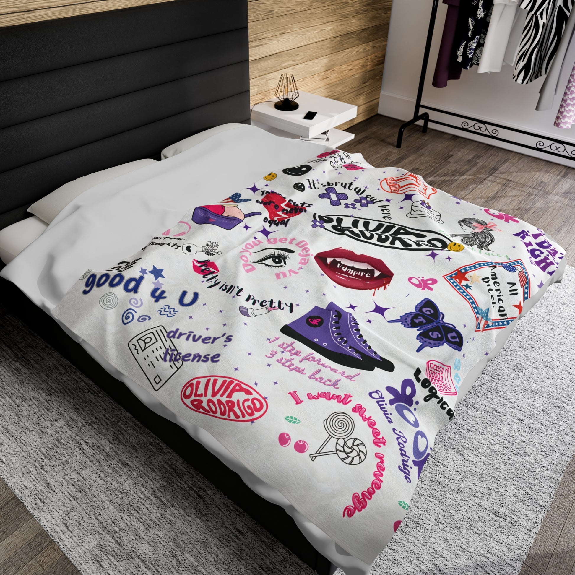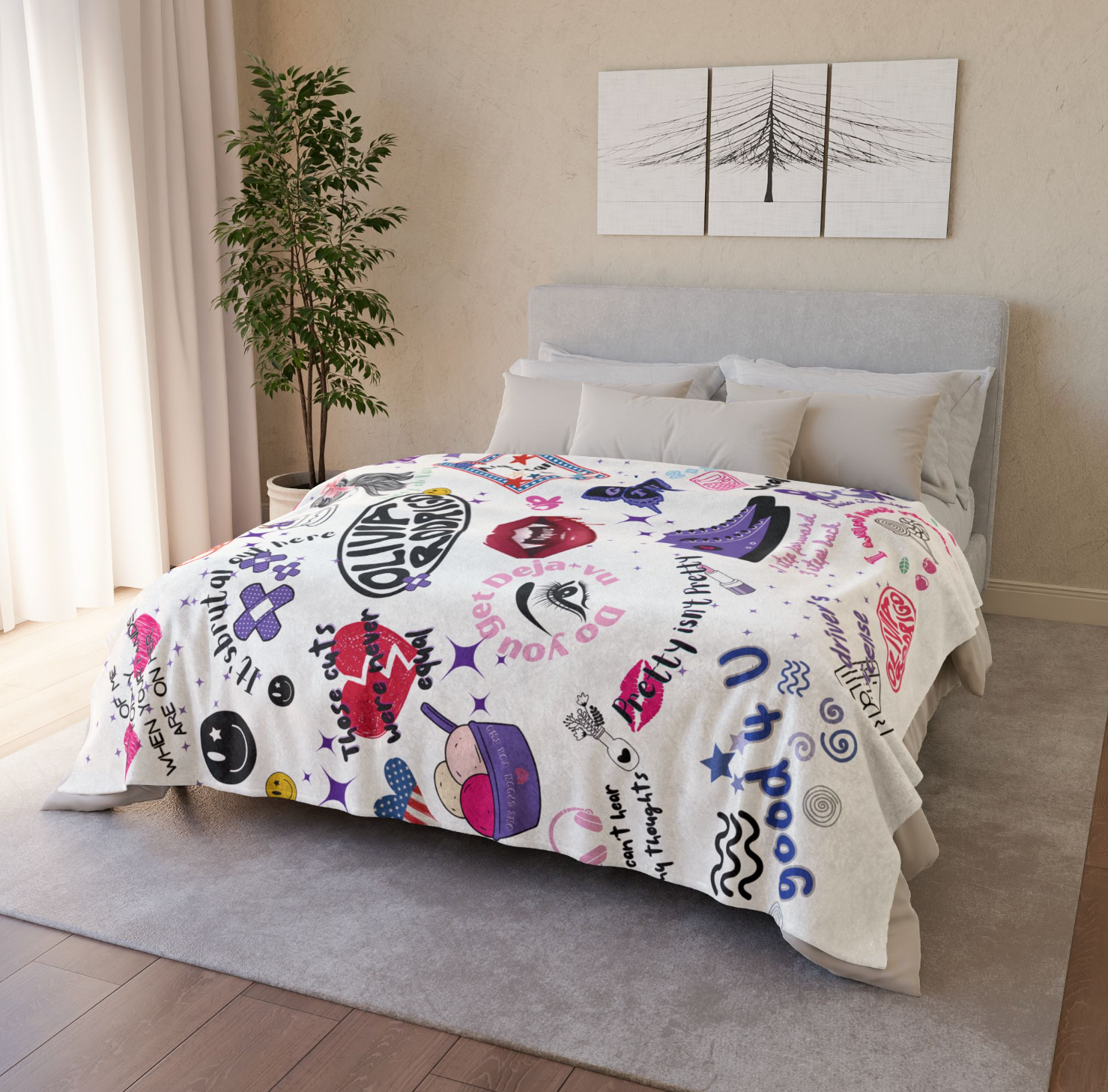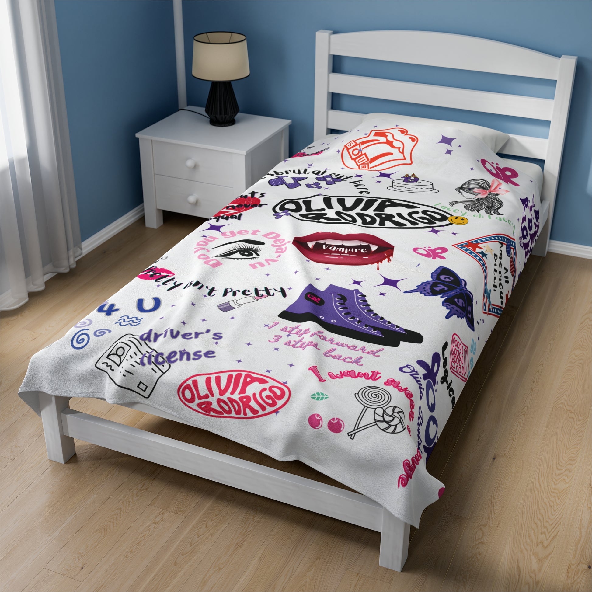 Relevant for Olivia Rodrigo fans and those looking for a cozy and stylish home decor piece.